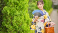 バスや電車を使っての軽いお出かけにも、木綿の着物は活躍します。